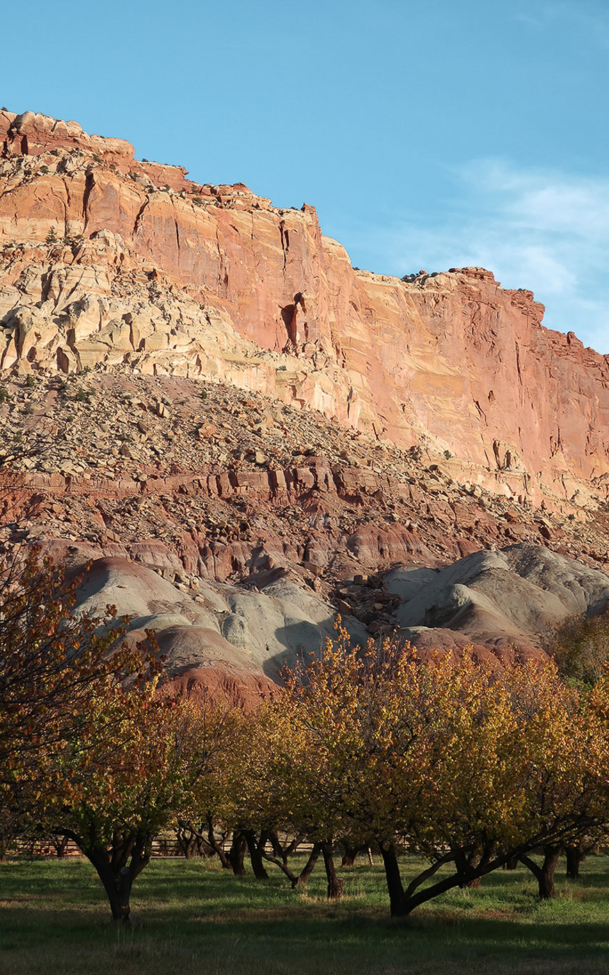 Das Hauptareal des Capitol Reef Nationalparks befindet sich rund um das Fruita Historic District. Hier ließen sich im 19. Jahrhundert Mormonen nieder und bewirtschafteten das Gebiet mit Obstplantagen. 1966 verließen sie die Siedlung, seit 1971 ist der Capitol Reef ein Nationalpark.