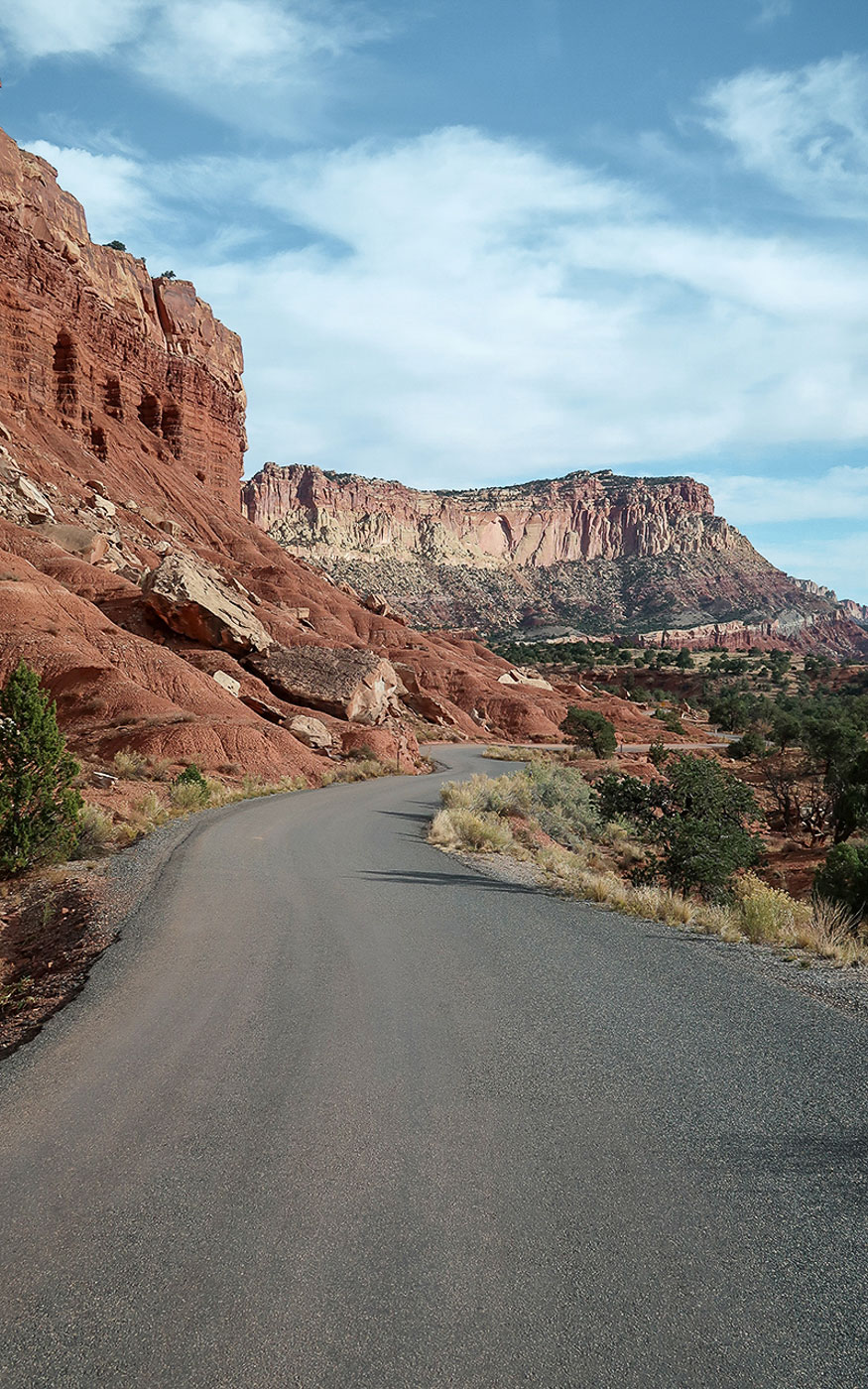 Das Fruita Historic District ist der erschlossene Teil des Capitol Reef Nationalparks und befindet sich entlang der Route 24 zwischen Torrey und Caineville. Die Region um das Cathedral Valley im Norden ist nur mit einem Allradfahrzeug zugänglich. Die Notom-Bullfrog-Road zweigt von der Route 24 ab und führt durch einsamere Gebiete des Nationalparks bis zur Burr Road. Auf die Weise lässt sich eine tolle Rundfahrt gestalten. Beide Straßen sind allerdings zum Teil unasphaltiert, Straßenkonditionen solltest du in jedem Fall vorher im Visitor Center erfragen.