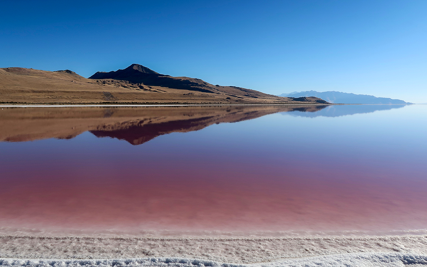 Auf meiner Suche nach Zugängen zum Salt Lake bin ich auf Stansbury Island gestoßen. Die Insel liegt am Ufer des Salt Lake und der Stansbury Bay - genau genommen führt die Straße nur an der Stansbury Bay entlang, der Zugang zum Salt Lake ist nur zu Fuß möglich. Was die Insel aber in meinen Augen so besonders macht, sind die Farben. Wenn du bis zum Aussichtspunkt am nördlichen Ende der Straße fährst, schimmert das Wasser intensiv rosa, was vor der weißen Salzkruste einen besonders tollen Kontrast bietet. Einheimische haben mir erklärt, dass dieses Farbspiel vom hohen Magnesium-Gehalt im Wasser kommen würde.