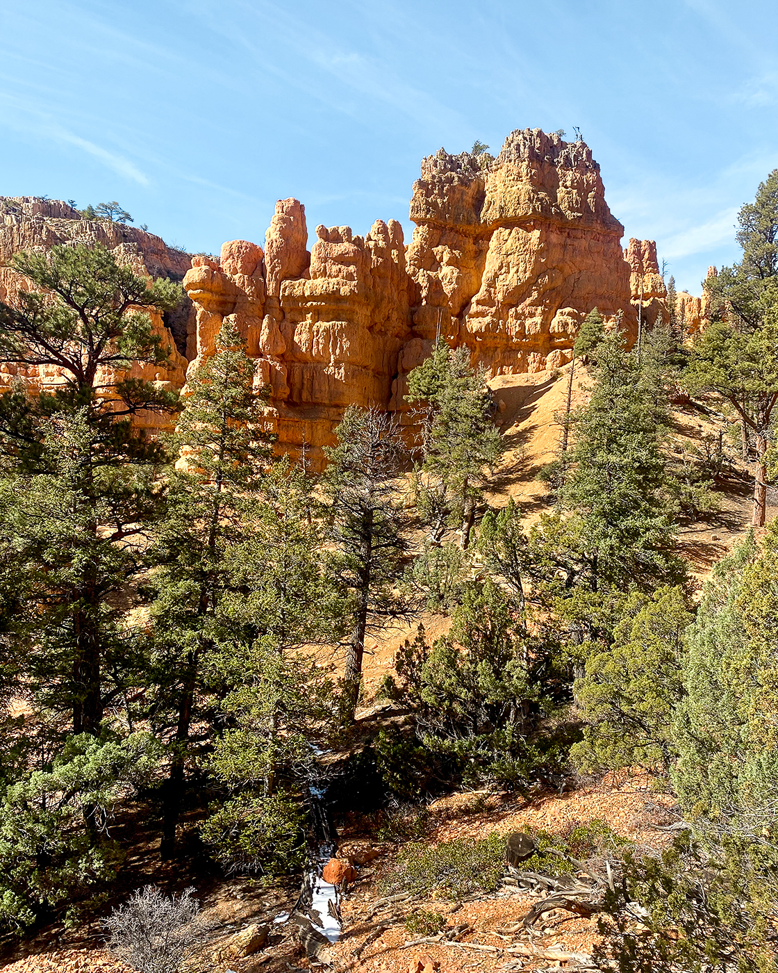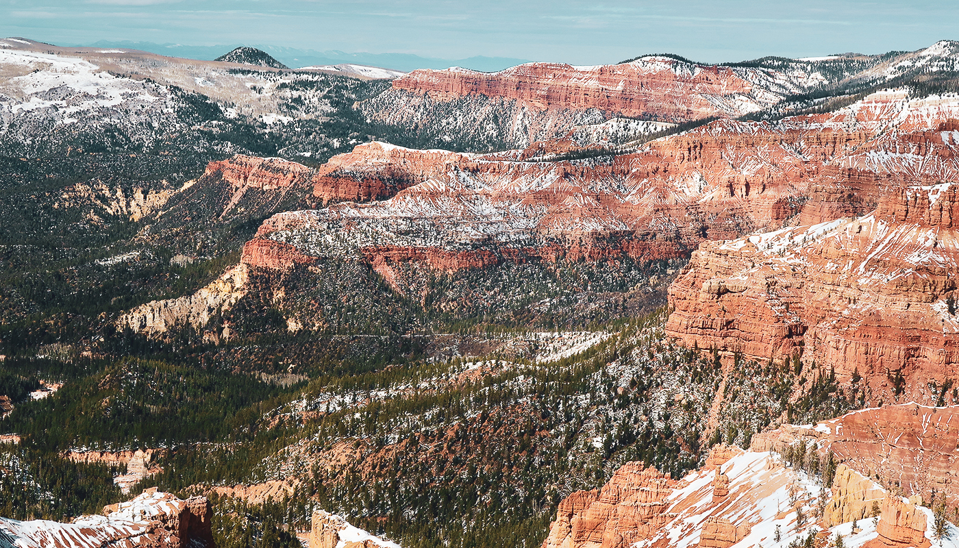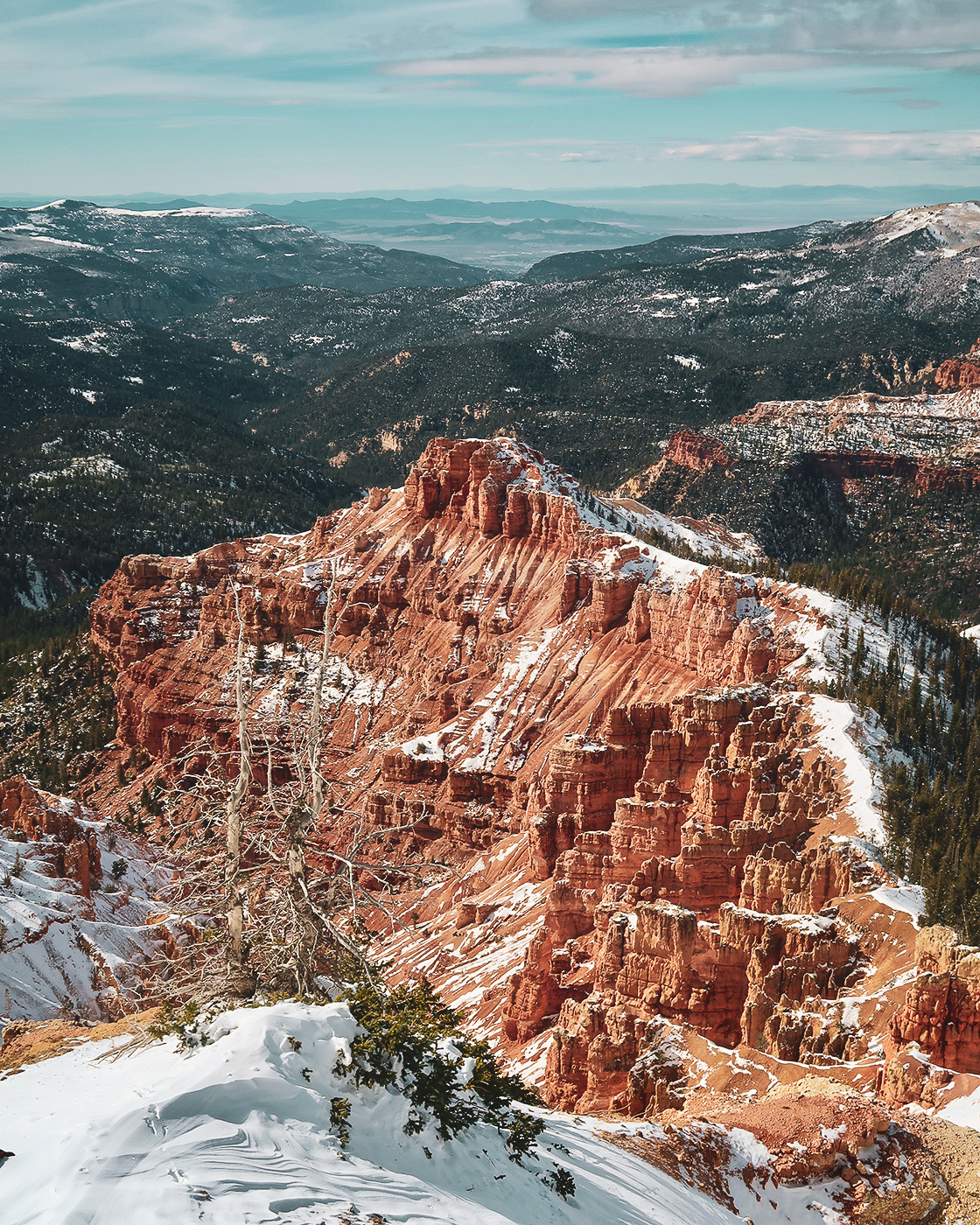 Der South Rim Trail führt dich vom Point Supreme zum Spektra Point Amphitheater und weiter hinab zum Bartzen Viewpoint. Von hier könntest du noch weiter zur wenig bekannten Bartizan Arch laufen, der Weg gilt allerdings als anspruchsvoll. Allein das Panorama bis zum Bartzen Viewpoint soll aber schon spektakulär sein - leider konnte ich aufgrund des Schnees den Trail nicht begehen.