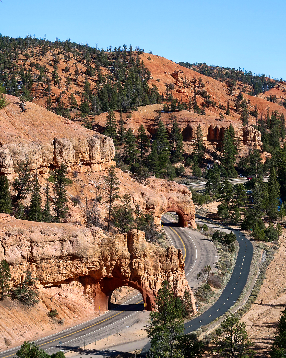 Mir hat der Tunnel Trail besonders gut gefallen: auf der Fahrt entlang der Scenic Route 12 Richtung Bryce Canyon passierst du zwei extrem fotogene Felstunnel - auf dieser 1,5 Kilometer langen Wanderung steigst du auf einen kleinen Berg hinauf, von wo du einen fantastischen Blick auf die hintereinander liegenden Tunnel hast.