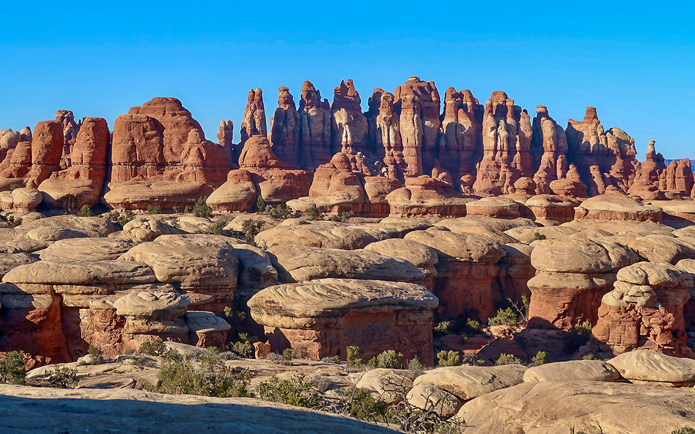 Der südlichere „The Needles“ Abschnitt besticht durch seine Felsnadeln - am eindrücklichsten kannst du diese auf einer Wanderung durch den Chesler Park bestaunen. „The Maze“ ist ein Paradies für Kletterer, allerdings sehr abgeschieden und nur mit einem Allradfahrzeug zu erreichen.