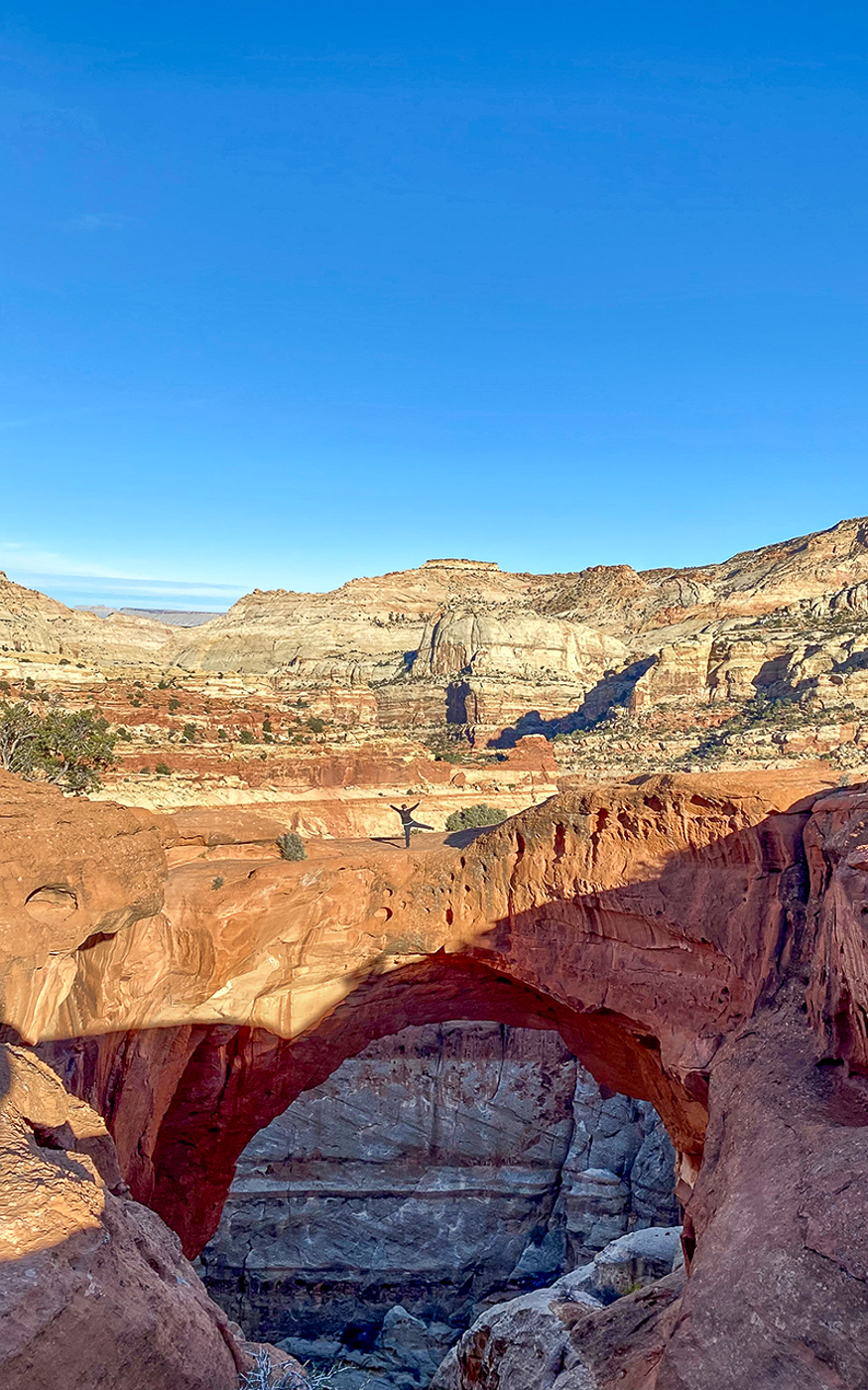 Auf jeden Fall solltest du die 10 Kilometer lange Panoramastraße von Fruita gen Süden fahren. Sie bietet dir einen faszinierenden Einblick in die Welt der roten Sandsteinfelsen. Ergänzen lässt sich die Fahrt mit einer der zahlreichen Wanderungen, zum Beispiel zur Cassidy Arch oder Capital Gorge. Hast du mehr Zeit und schreckst auch nicht vor unbefestigten Straßen zurück? Dann kann ich dir auch die weniger besuchten Teile im Norden und Süden empfehlen: Die Notom-Bullfrog Road führt durch den lang gezogenen südlichen Teil des Nationalparks und ist auch für normale Autos zugänglich - die Region um das Cathedral Valley im Norden hingegen ist Allradfahrzeugen vorbehalten.