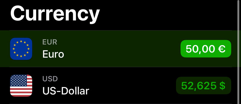 * Auch ein Vorteil: Du kannst bei Revolut mehrere Währungen gleichzeitig haben. Dadurch kannst du dir vor der Reise ein Budget in eine andere Währung (US-Dollar beisielsweise), um dann einen schnellen Überblick über die Ausgaben in USD zu bekommen.