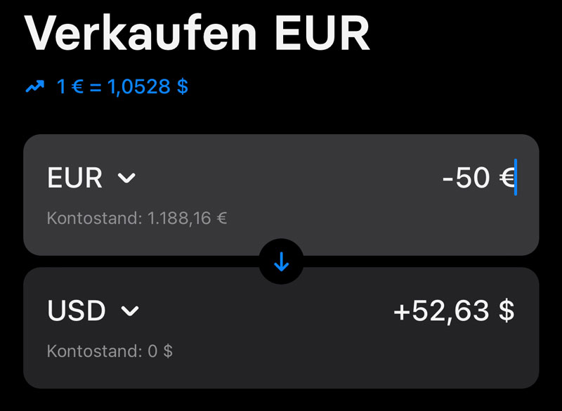 - Revolut ist nicht an eine Währung (Euro) geknüpft. Du kannst im Monat 1.000 Euro kostenlos tauschen. Beispielsweise in USD umwandeln und diese USD dann auf ein amerikanisches Konto überweisen. Außer bei thailändischen Baht THB und ukrainischen Hrywnja UAH). Eine Übersicht der Gebühren bekommst du hier auf der Revolut Webseite.