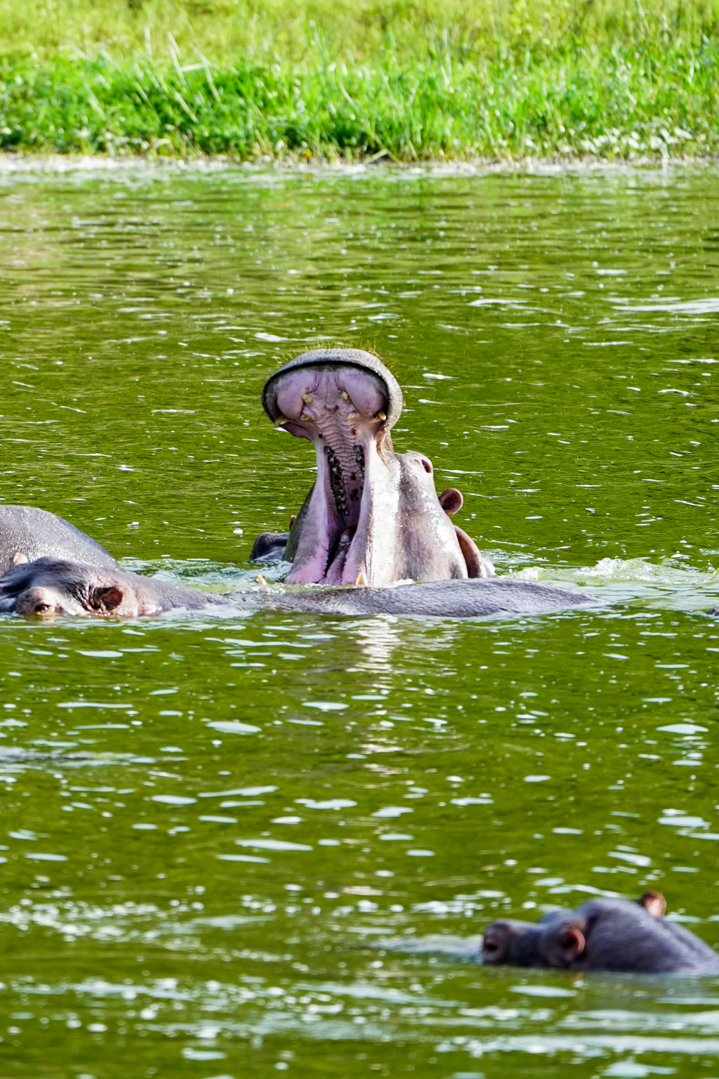 Im Wasser wirken diese gar-nicht-so-happy Hippos allerdings äußerst friedlich, schwimmen und tauchen behäbig, aber dennoch voller Grazie durch das Kühle Nass.