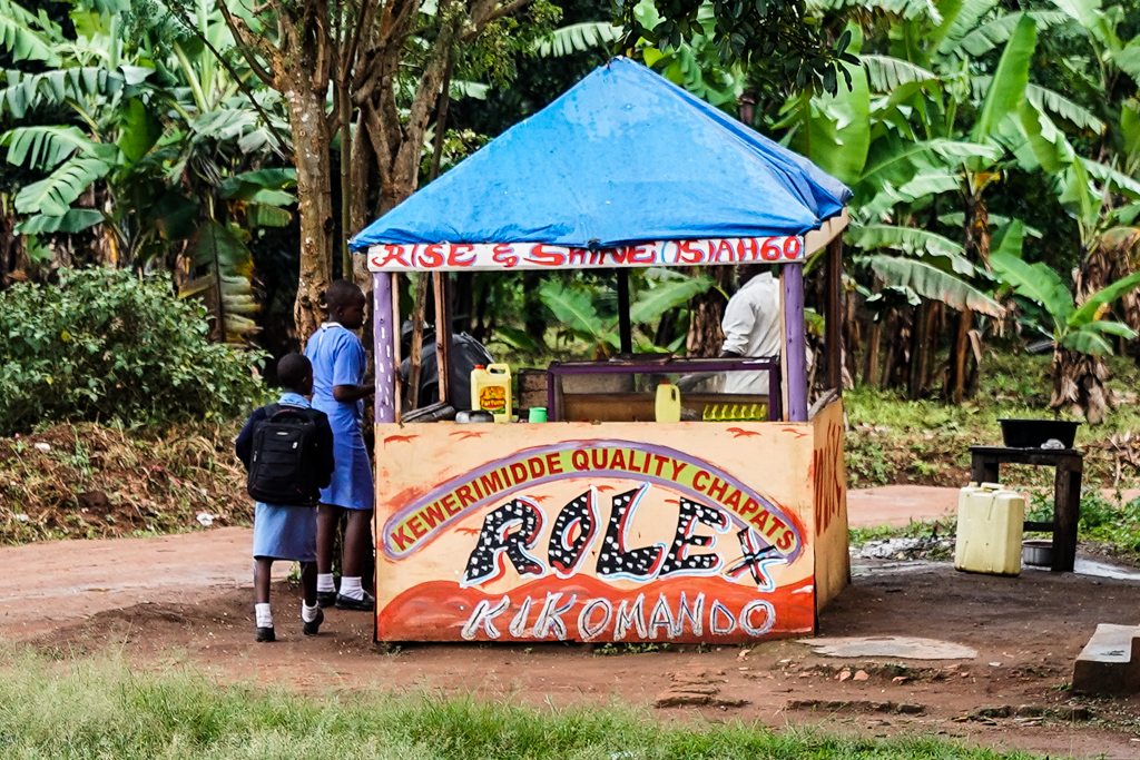 Kulinarisch ist Uganda sicher keine Gourmet-Destination, dennoch lohnt es, sich abseits der Hotelküche auf die Straße zu begeben. Der Knaller ist „Rolex“, kokettierend-lautmalerisch für „Rolled Eggs“: Ein Chapati (indisches Fladenbrot) ummantelt ein herzhaft gewürztes Omelett mit Karotten-Kohl-Füllung. Die kleinen Rolex-Straßenstände findet man an jeder Ecke, eine Dosis Eierrolle gibt es für nicht mal 50 Cent.