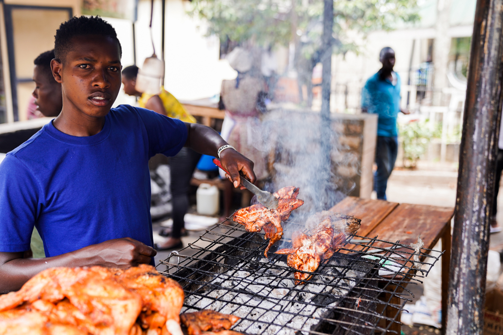 Sehr urig-delikat sind „Muchomo“, also Fleisch am Spieß. Auf meiner Fahrt nach Kampala empfiehlt mir mein Taxifahrer einen Muchomo-Street-Food-Stand seiner Gunst, und wir teilen uns brüderlich einige Spieße mit Hühnerherzen und -Leber. Merke: Wenn der Einheimische zubeißt, kann man sicher sein, dass die Qualität gut und frisch ist. Mambo sawa!