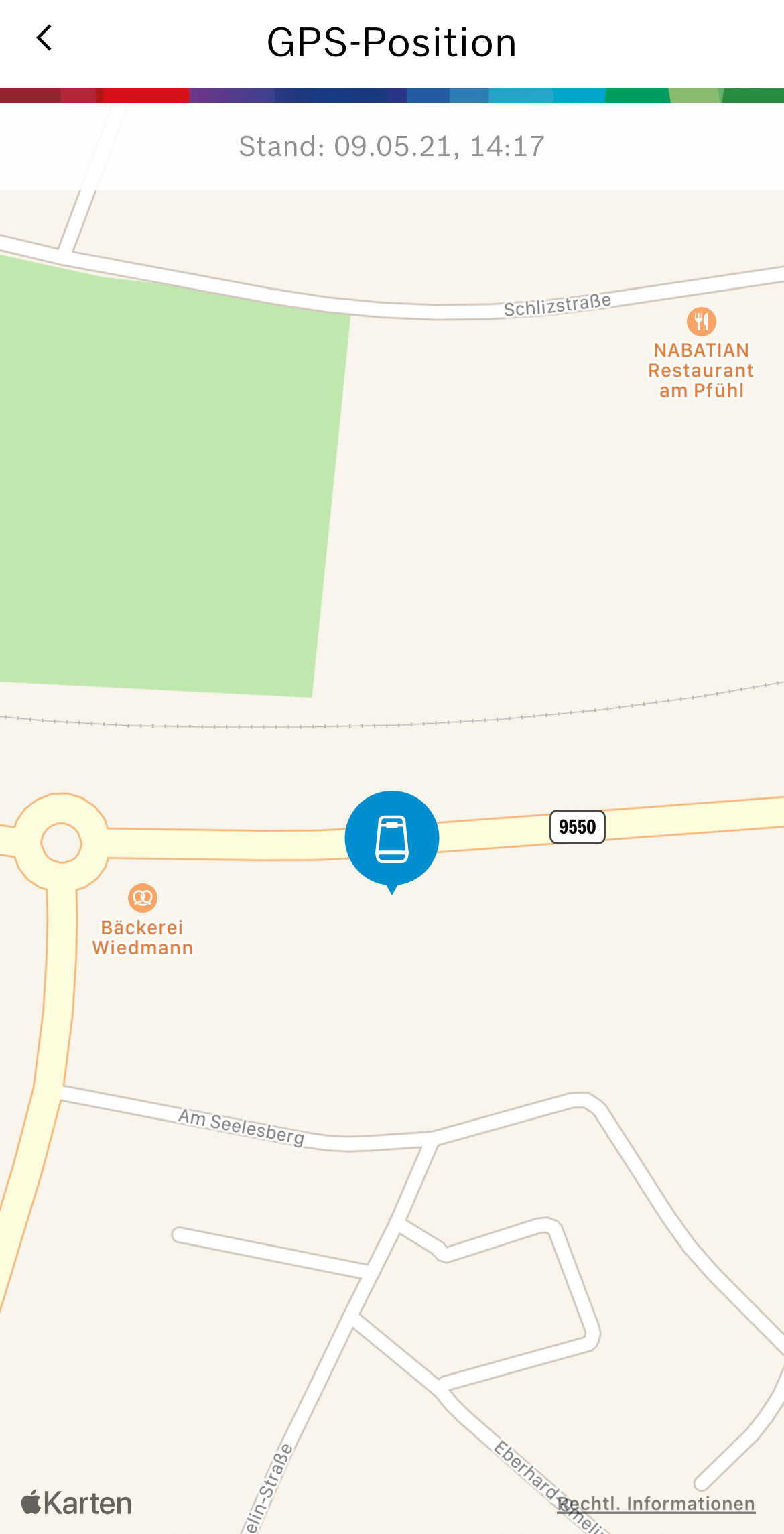 Du kannst in der App außerdem erkennen, wo sich dein spexor befindet. Ein richtiges GPS-Tracking ist allerdings noch nicht implementiert. Der Standort wird beim aktivieren und deaktivieren übertragen.