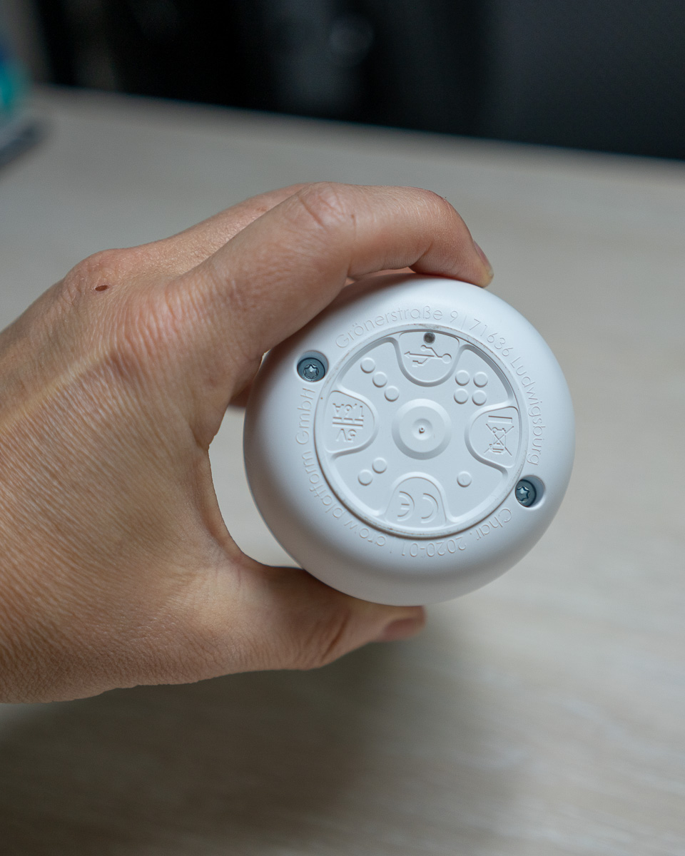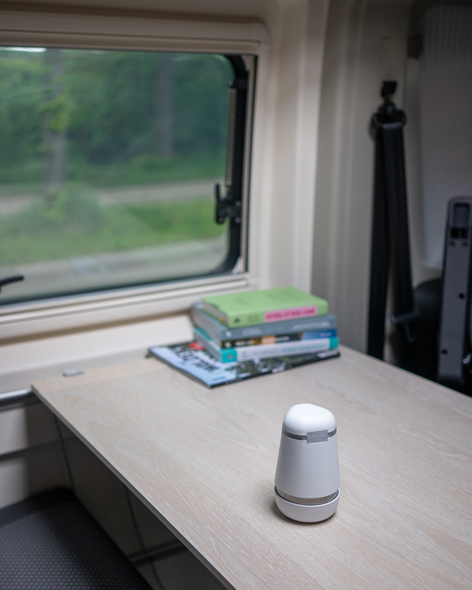 Das Gerät ist so klein, dass es kaum auffällt, wenn es im Camper steht. Unwissende könnten es mit einer Bluetooth-Box verwechseln. Der Akku hält 2 bis 3 Wochen (laut Hersteller), es muss nur ein Mobilfunk- oder WLAN-Empfang vorhanden sein. Im ersten Jahr ist der Mobilfunk (EU-weite SIM-Karte) enthalten, im Folgejahr werden dafür 11,99 Euro fällig. Zusätzlich gibt es weitere tolle Features, wie die Luftqualität und die für nur 99 Cent/Jahr buchbare Pollenbelastung. Das war es mir wert.