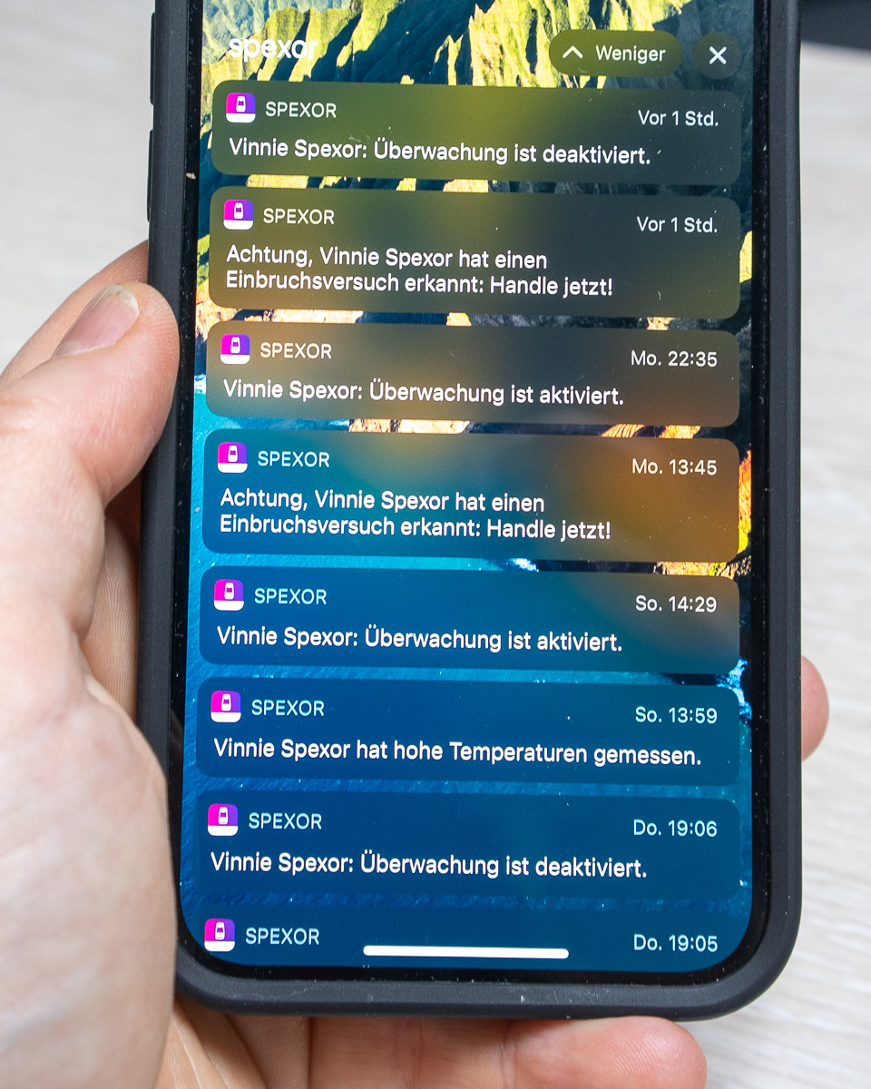 Dabei hast du die Wahl, ob der Alarm geräuschlos aufs Smartphone oder mit einem Alarmton erfolgen soll. Die Steuerung erfolgt per App am Handy. Seit zwei Monaten habe ich den spexor von Bosch im Einsatz und bin bis jetzt komplett begeistert. Oft vergesse ich selbst, dass der Alarm aktiviert ist und erschrecke, wenn der Alarm beim Betreten des Campers per Signalton auslöst. Das Gute daran ist, dass ich diesen an der Unterseite des Geräts durch die Eingabe eines Codes deaktivieren kann.