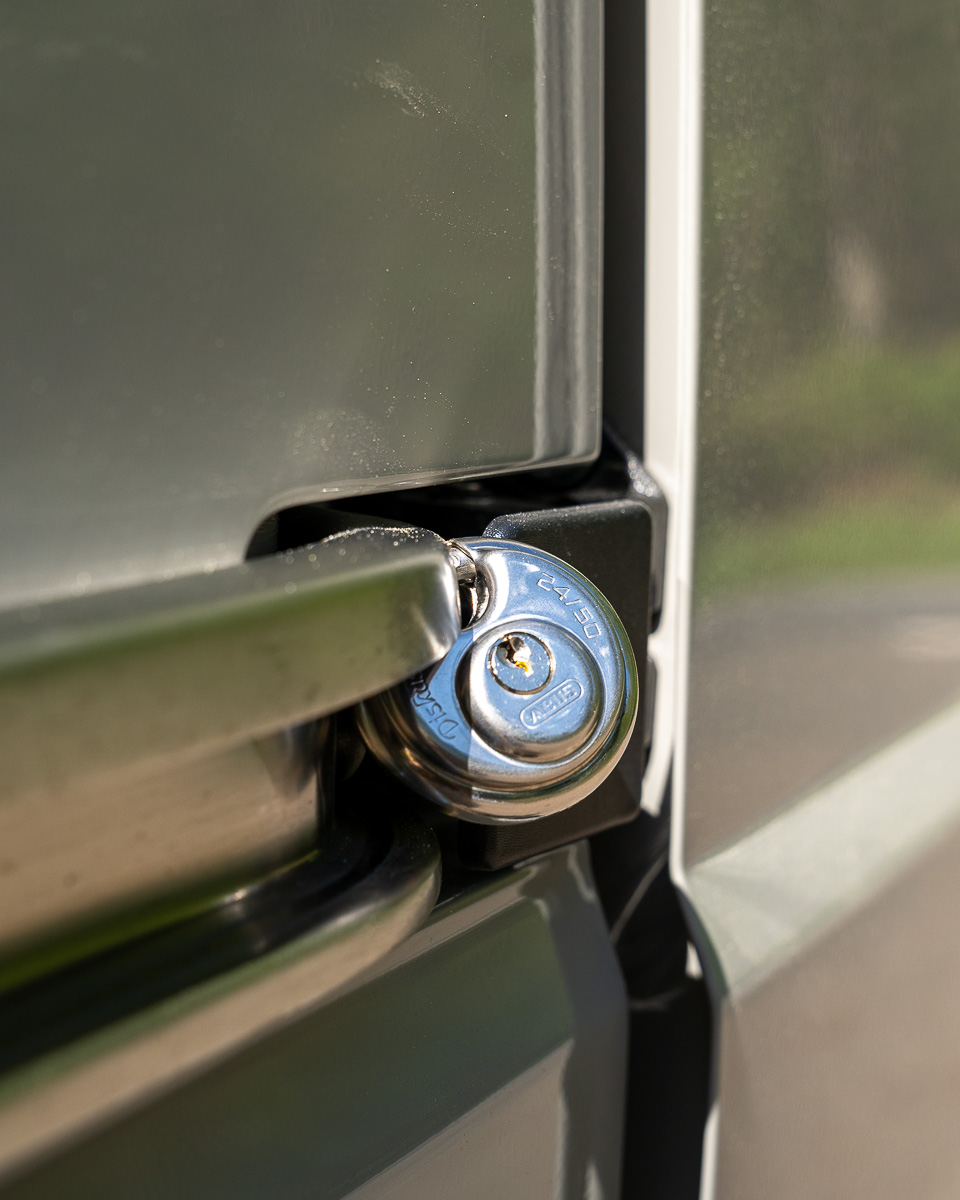 Wenn ich unterwegs bin, habe ich in der Regel einen ziemlich guten Schlaf. Ich wache nicht beim kleinsten Geräusch auf oder fühle mich unsicher. Trotzdem habe ich ein paar kleine Sicherheitsvorkehrungen direkt beim Kauf getroffen und vom Händler einbauen lassen.