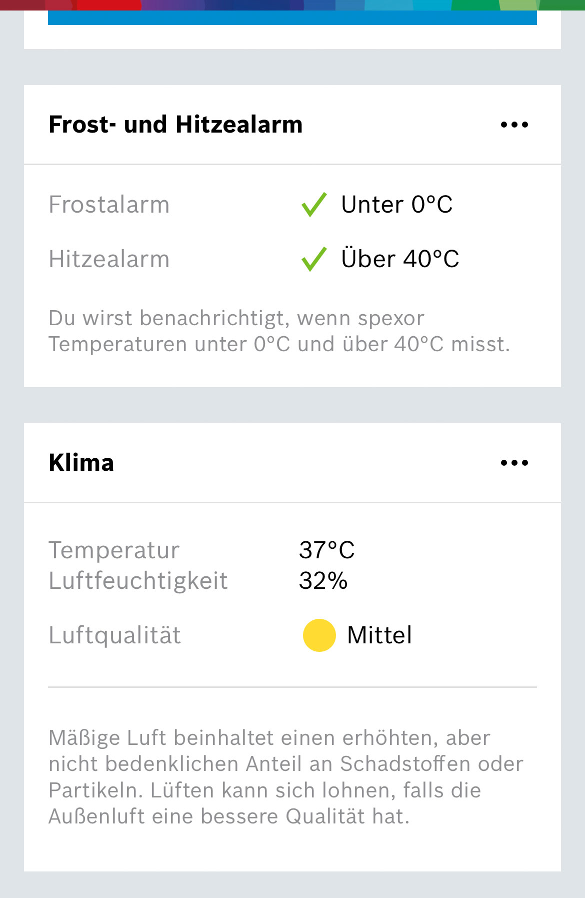 - Bei Unregelmäßigkeit schlägt spexor Alarm: je Einstellung als Audiosignal und/oder Pushbenachrichtigung, oder Lichtsignal