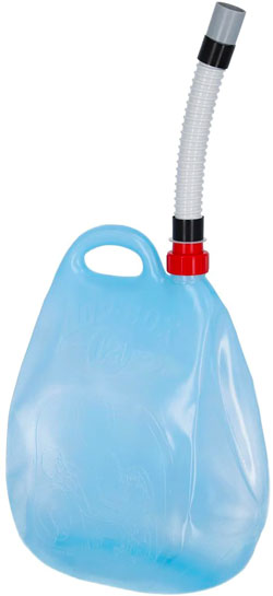 Viel zu oft bin ich zu faul, für ein paar Liter Wasser am Campingplatz oder Stellplatz meinen Schlauch auszurollen. Daher habe ich einen kleinen faltbaren Kanister mit Einfüllstutzen dabei. Du kannst auch eine Gießkanne nutzen, diese benötigt allerdings viel mehr Platz. Der Kanister ist wirklich hilfreich zum Befüllen des Wassertanks. Must-have fürs Camping Equipment.