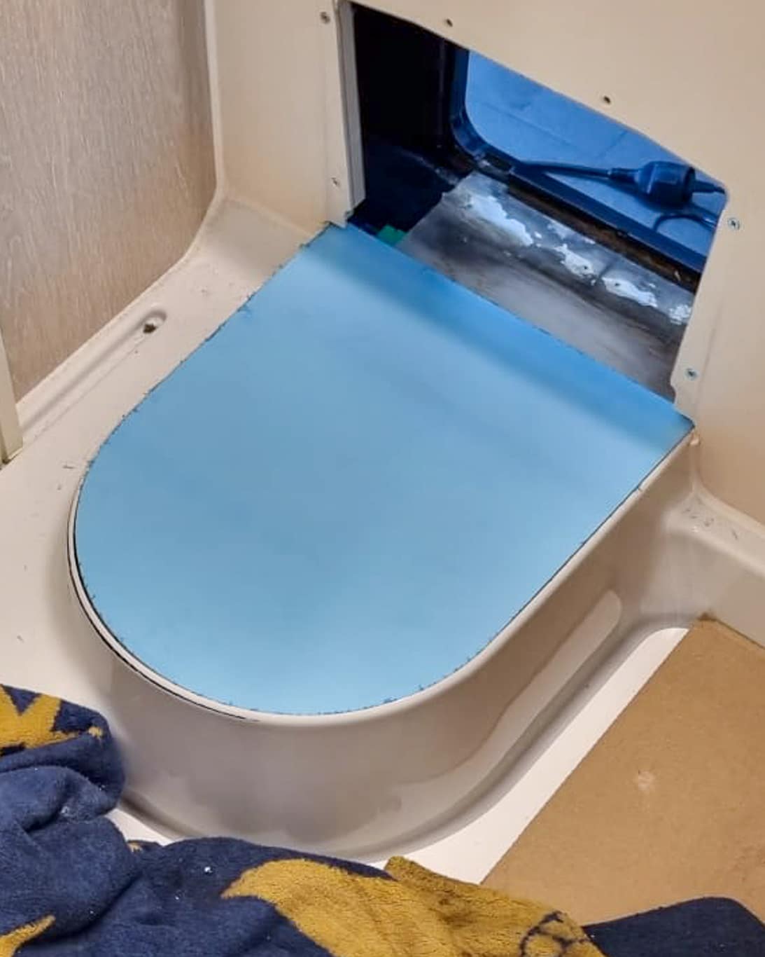 Um dir einen Eindruck zu geben, wie es ohne Thetford Klo aussieht und was sich darunter alles verbirgt, haben wir jeden Schritt fotografiert. Details kann ich daszu nicht liefern, da ich den Umbau beim Händler haben machen lassen.