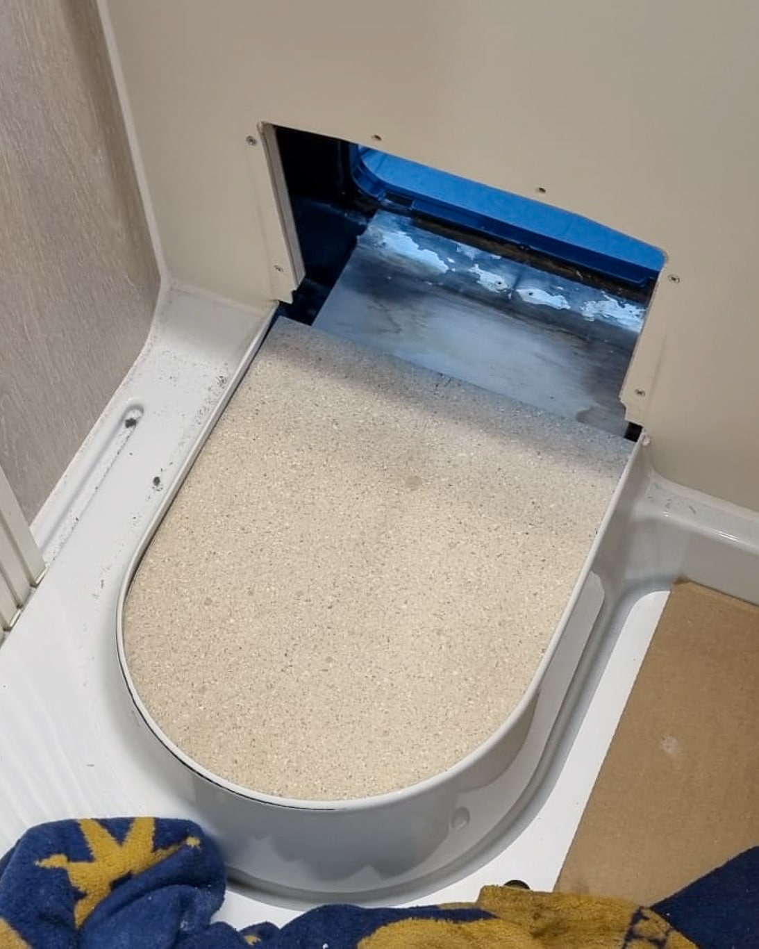 Hie folgen Details der Umrüstung zur Trenntoilette. Ich habe alles beim Spezialisten machen lassen und kann dir daher dazu keine Informationen liefern. Mir war es wichtig, dass alles richtig abgedichtet wird. Somit hat mein Tourne Händler die alte Toilette aus und die neue Trenntoilette eingebaut.