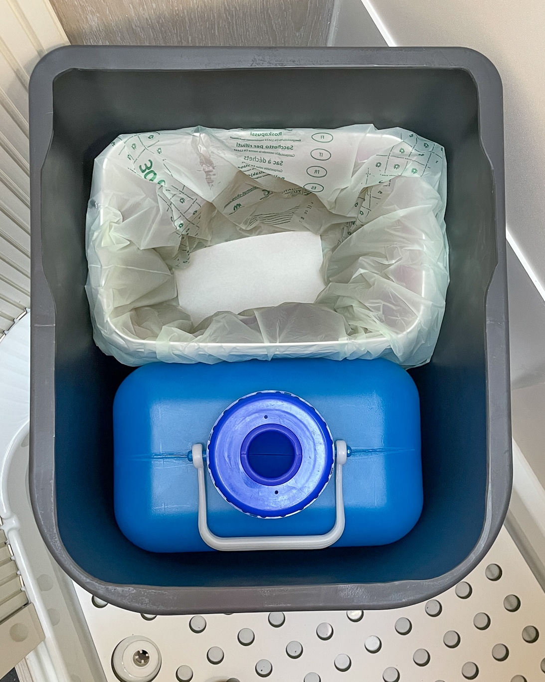 - Wohin mit Klopapier? Da du sowieso alles im Restmüll entsorgst, kannst du das Klopapier in den Fäkalientank werfen (genauso wie anderen Müll). Ich werfe das Papier allerdings in eine separate Tüte, damit ich das Klo seltener leeren muss und es sich weniger schnell füllt.