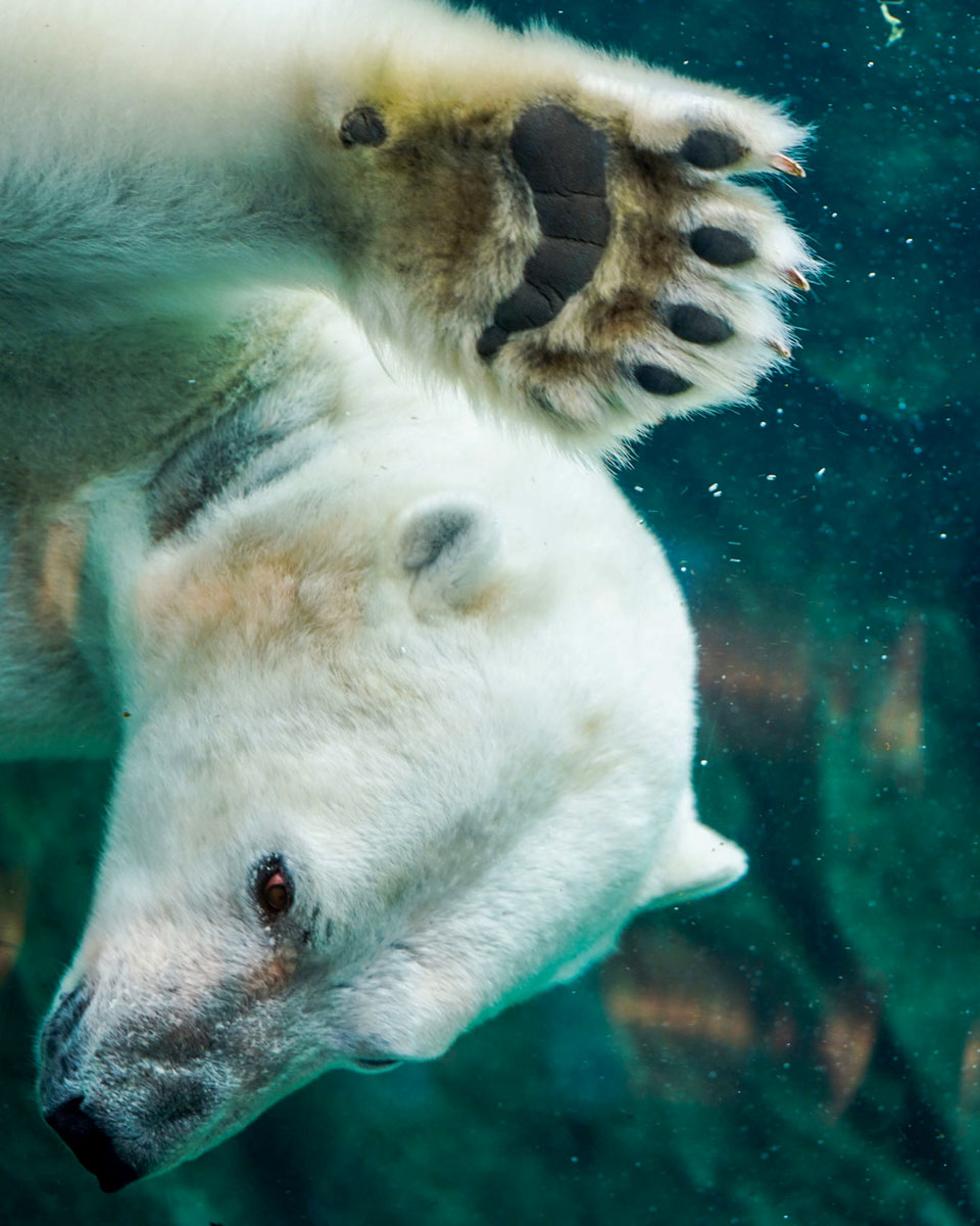 Einzigartig für diesen Zoo ist der „gläserne Tunnel“, über und neben dem sich die Eisbären im Wasser tummeln. So nah würde man den Tieren, zumindest ohne ernst zunehmenden Fleischwunden oder dem Verlust einiger Extremitäten, sonst wohl nie kommen.