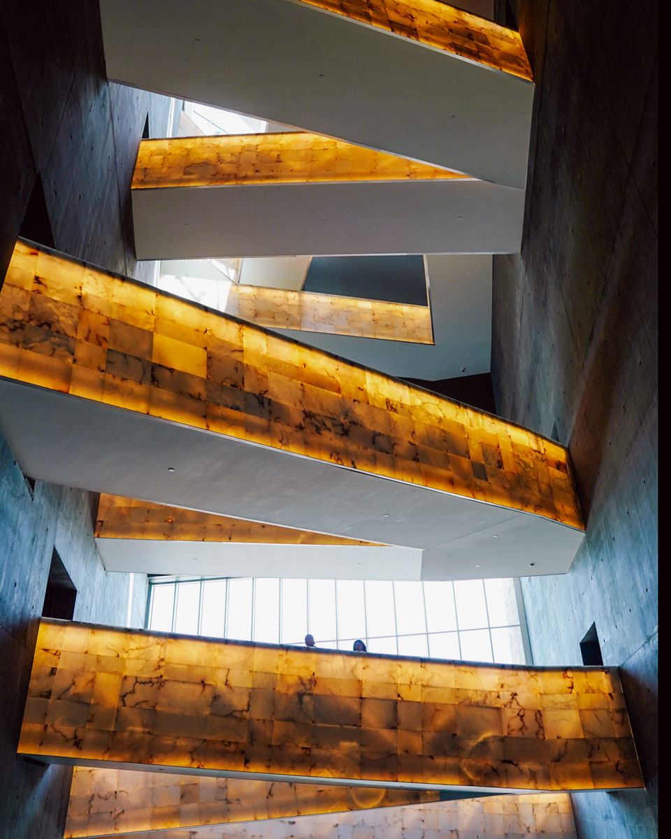 Jedes Detail unterwirft sich einer tiefer gehenden Bedeutung, bevor der „Aufstieg“ in die Freiheit im lichtdurchfluteten achten Stock, mit tollem Blick auf die Stadt, endet.