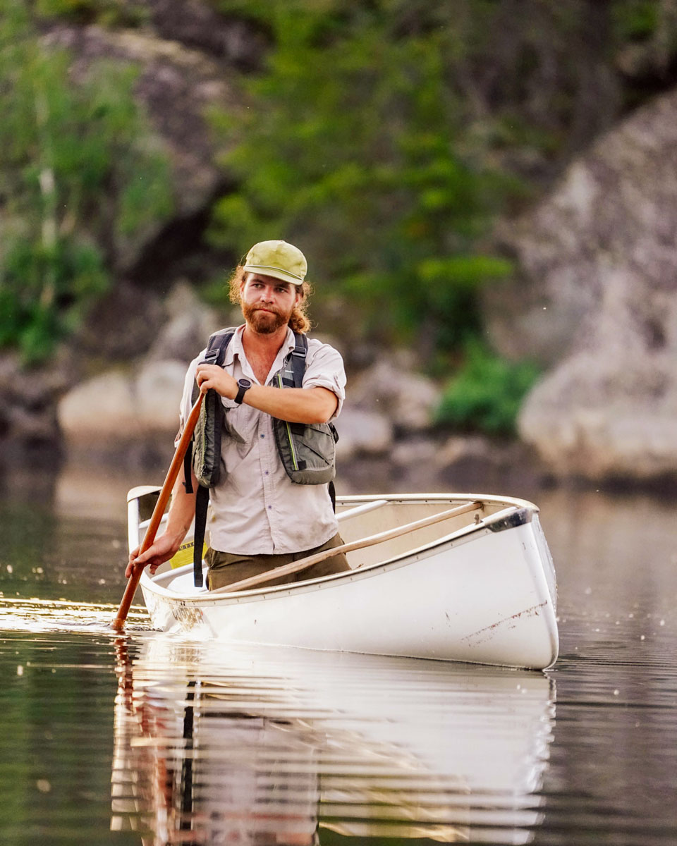 Tagsüber geht es aufs Wasser, mit dabei unser Guide Liam, den man sich ohne jeden Zweifel als Paddel-Supermodel auf jeder Ausgabe der „Canoe Weekly“ vorstellen könnte: ein bärtiger, in Form gegossener Vorzeige-Kanadier.