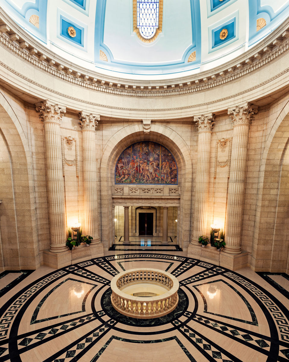 Oder: Im Hirn der Freimaurer. Das Manitoba Legislative Building in Winnipeg, Kanada, birgt geheime Symbole und Botschaften unter seiner Fassade, die auf eine Verschwörung hinweisen.